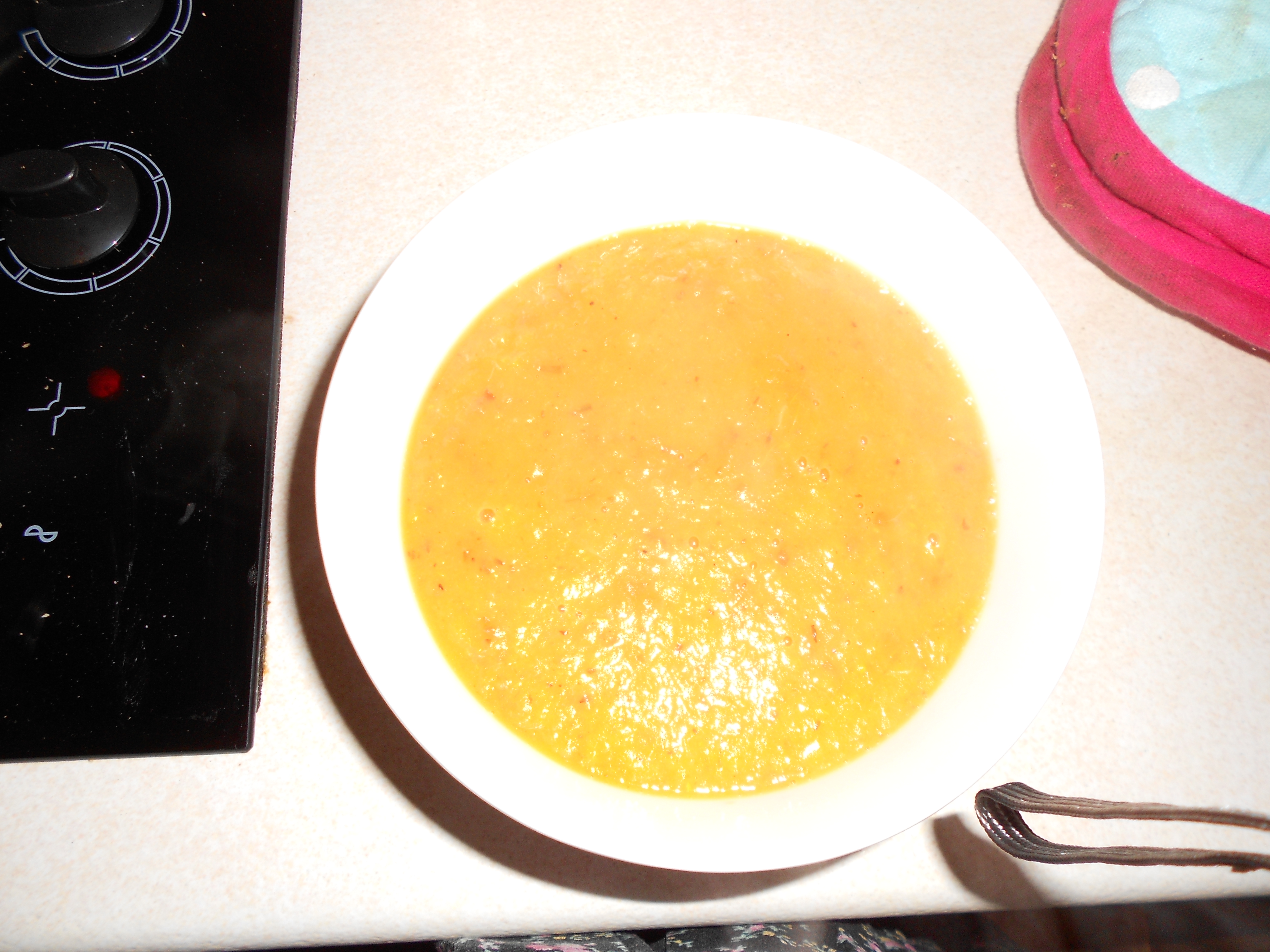 4. If you do not own any of the above (like myself until 3 weeks ago) use a potato masher to make the soup mushy. The texture is not quite as smooth or lovely as with the other 3 methods but it works.