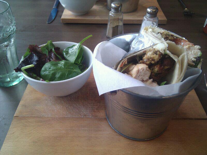 The decoration inside this pub was lovely; contemporary bar style but with a quieter atmosphere. No blaring music but lively enough that you could have a conversation without feeling like everybody could hear you. The menu has a wide selection of food on offer, plus roast dinners on a Sunday lunchtime. I chose to have a Mediterranean burrito with cajun chicken with a side salad. My brother decided to have posh fish and chips but with a side salad instead of mushy peas (to which he has something of an aversion). My burrito was filled with falafel which I adore and really had Mediterranean flavour. The chicken was pleasantly spicy without the flavour overpowering the other ingredients. My brothers posh fish and chips was prawn, sea bass and sardines, served with the most decadent enormous chips.