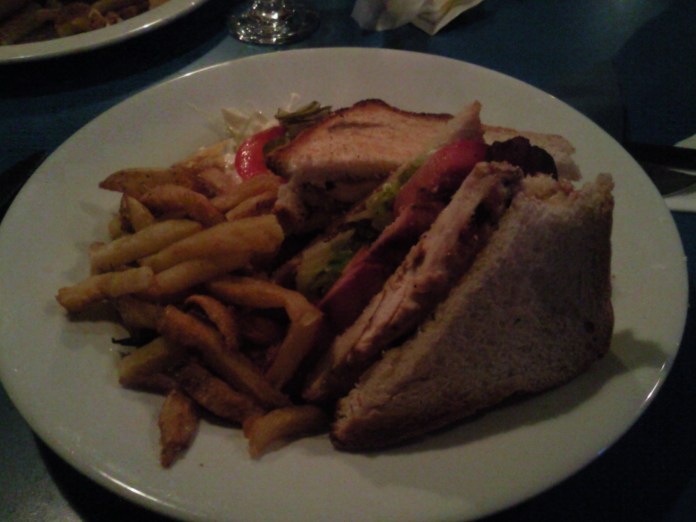 To follow I had a club sandwich which was served with coleslaw and fries: