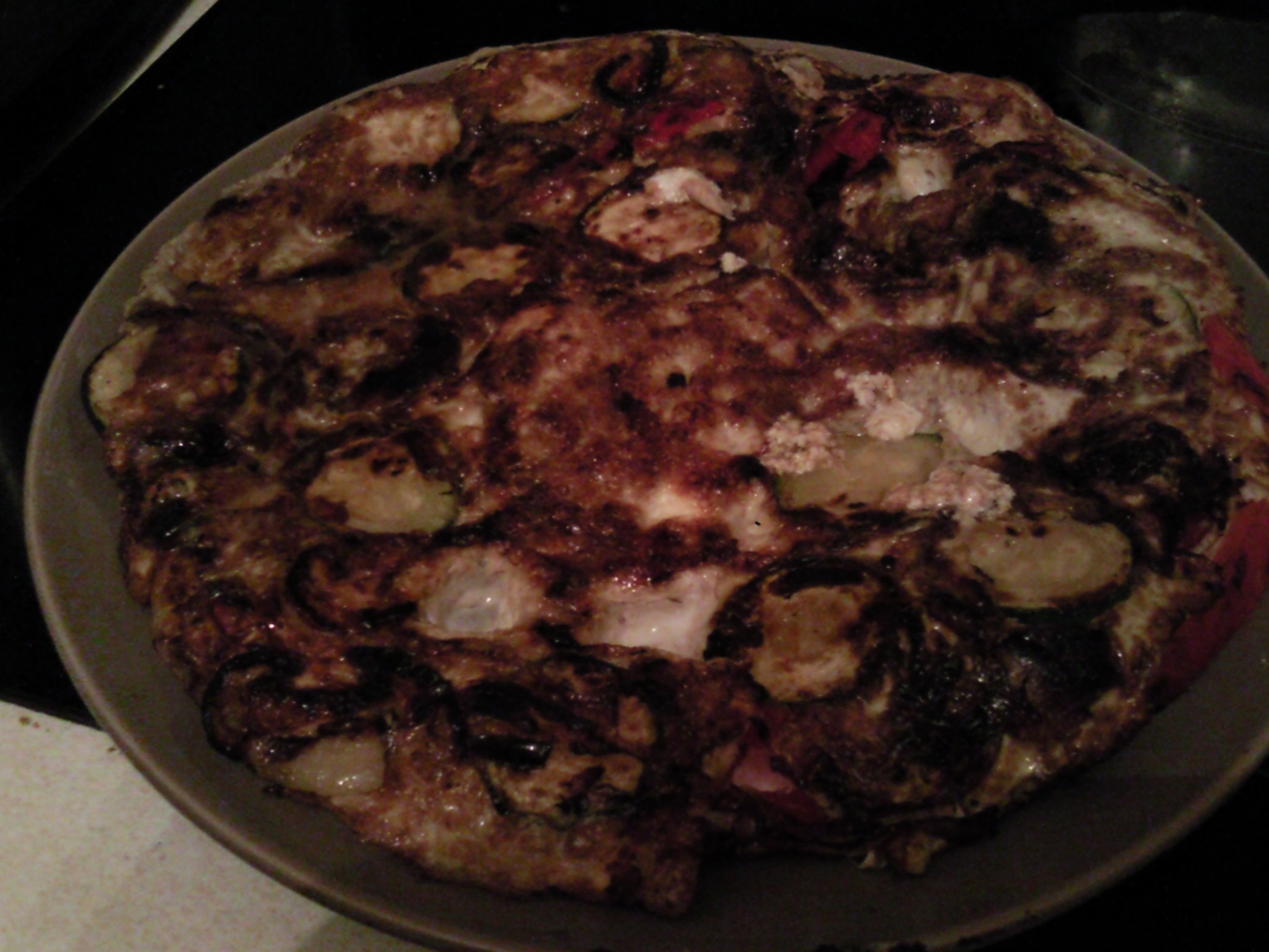This is a question I was pondering all day prior to cooking this dish. I didn’t get a definitive answer on this one. My boyfriend (J) said it was the presence of potatoes, a work friend said it was the egg to ingredient ratio and the chef boyfriend of my housemate said that frittata was served at room temperature while omelette was hot.