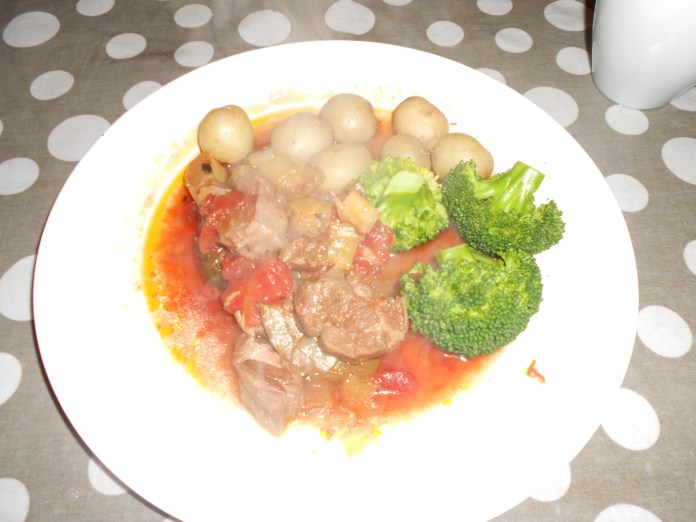 You can leave this cooking while you prepare things to go with this. I had my stew with boiled potatoes and brocoli but it honestly goes well with anything; bread, rice, pasta, cous cous. The beauty of it is that you can leave it heating while you wait for something like brown rice to cook but if you wanted to collapse into a heap it’d be ready quickly enough to serve with crusty bread.