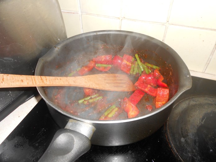 I’m on a bit of a Christmas healthy eating/exercise kick. To be honest it’s not proving that difficult, just involves limiting treats and making myself go to the gym, otherwise it’s just adventures in healthy cooking. Now tonight I stayed a little later than usual at work and then went to the gym straight from work. Now this pretty dull tale sets the scene. I came in from work, I needed food. Basically this recipe proves you can make yourself delicious and healthy food within about 15 minutes. All you need is a decent cooking paste. In this case Asda own brand “chosen by you sticky ginger and lime paste”. With a few extra ingredients you can make it taste a bit more delicious and a little bit less like it comes from a jar.