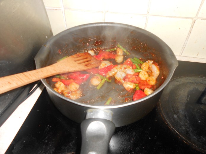 The seafood of your choice – I defrosted some scallops and some raw peeled prawns