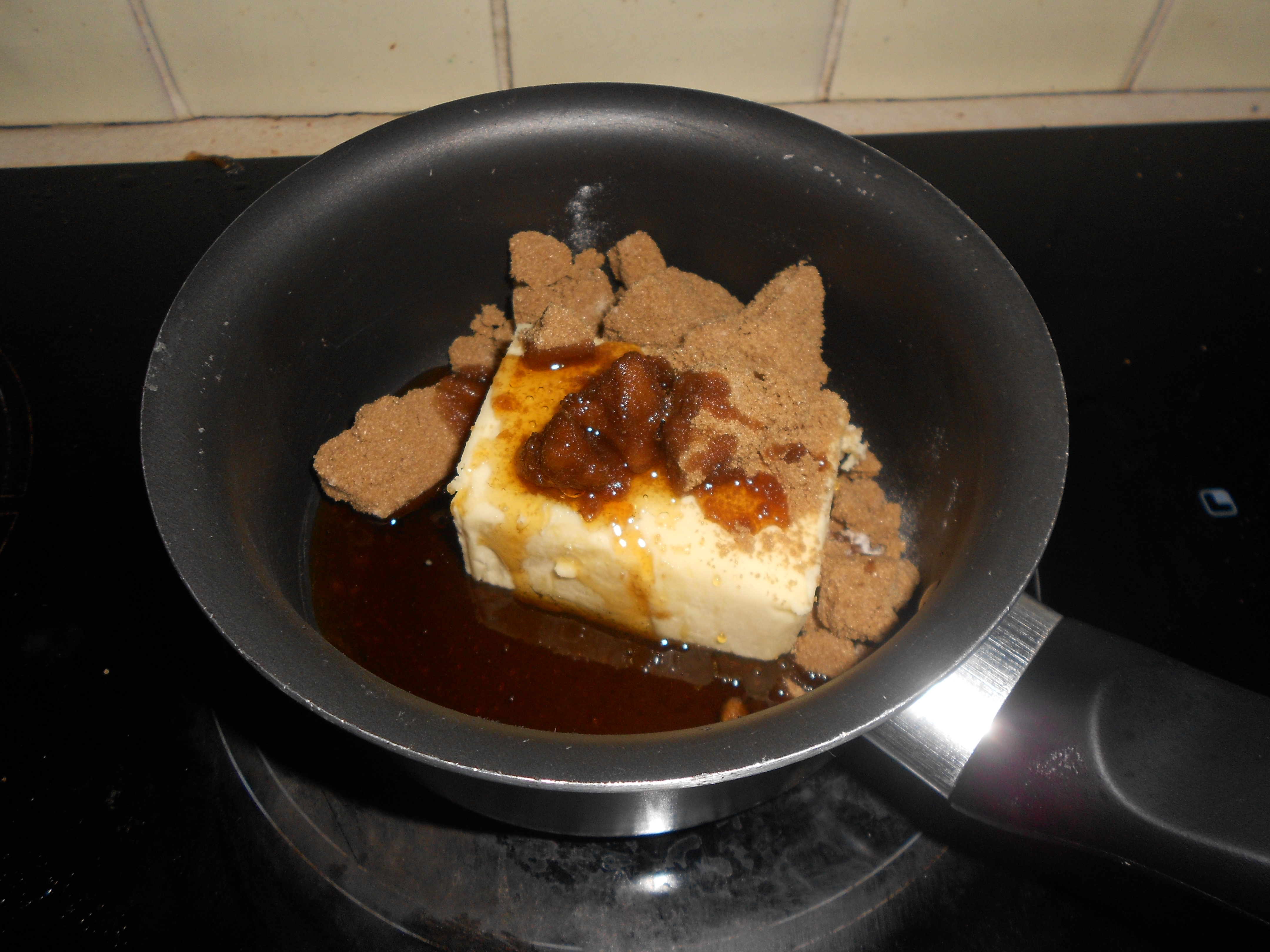 Put the sugar, butter and syrup into a small saucepan and melt together. (You can microwave it all in a glass bowl but I like waiting for it all to melt).