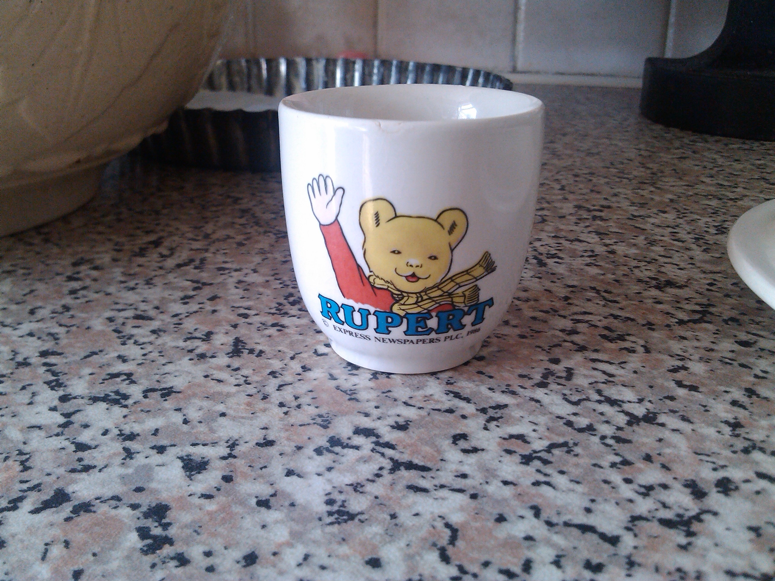 Separate your eggs into two bowls. I used this charming Rupert Bear egg cup to separate my eggs. Take care not to get any yolk in the whites as it prevents them from becoming foamy later (which is important).