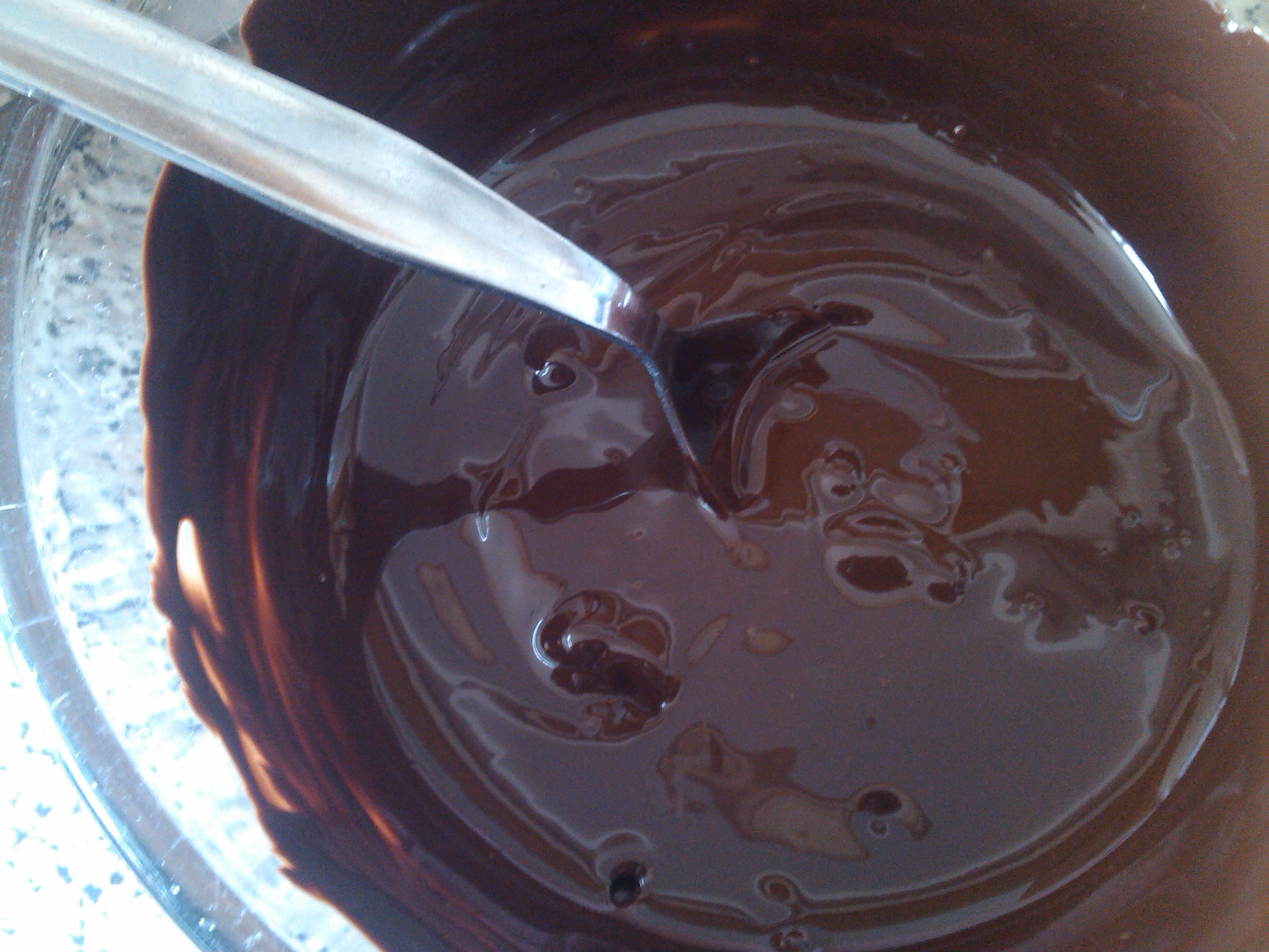 Melt the chocolate. As a rule, I use the microwave as it’s what I learned from my mum, but other methods are fine. Take care not to overheat the chocolate and dry it out.