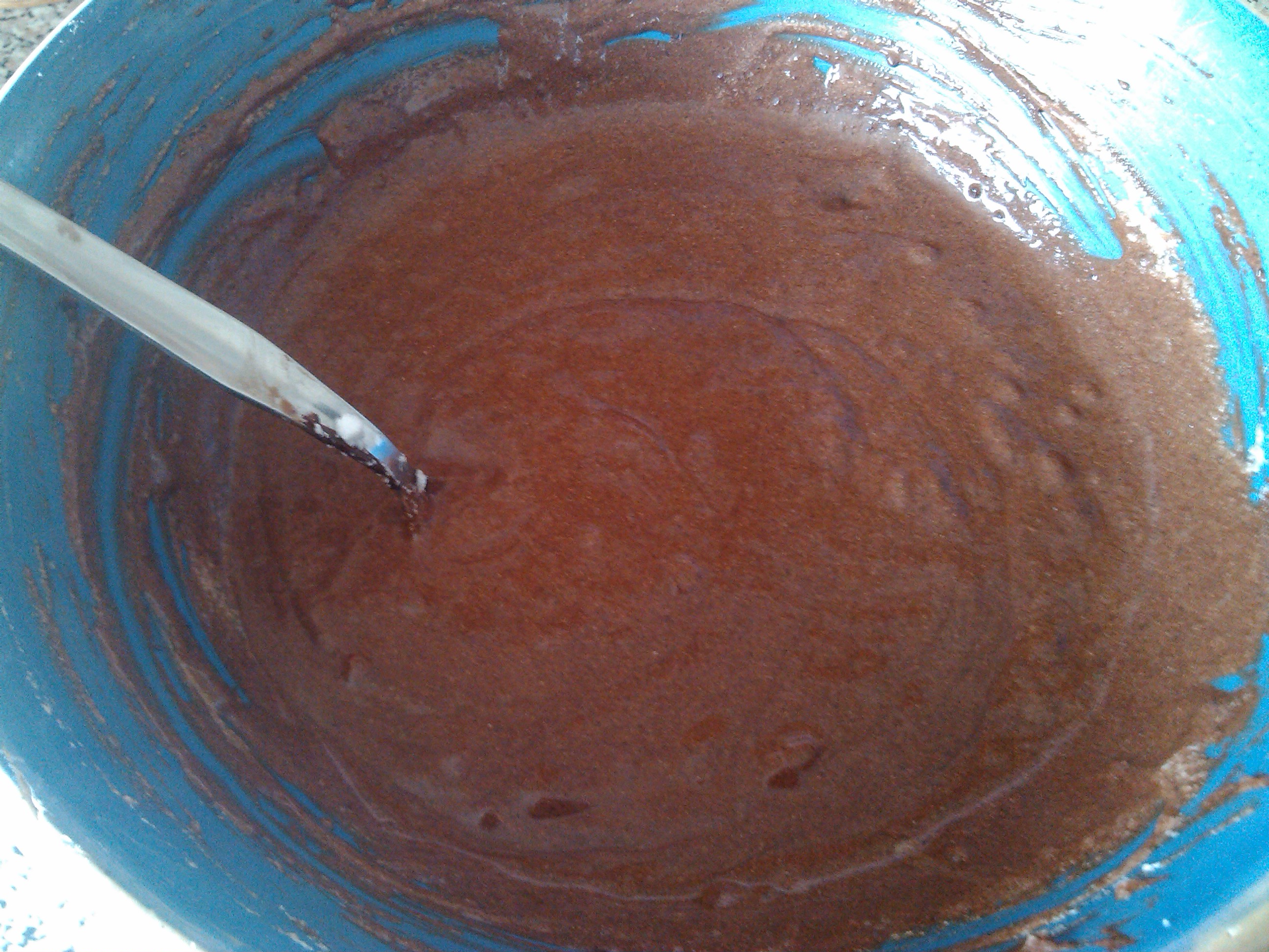 Add the warm water. This mixture should go runny. Gradually add the chocolate.