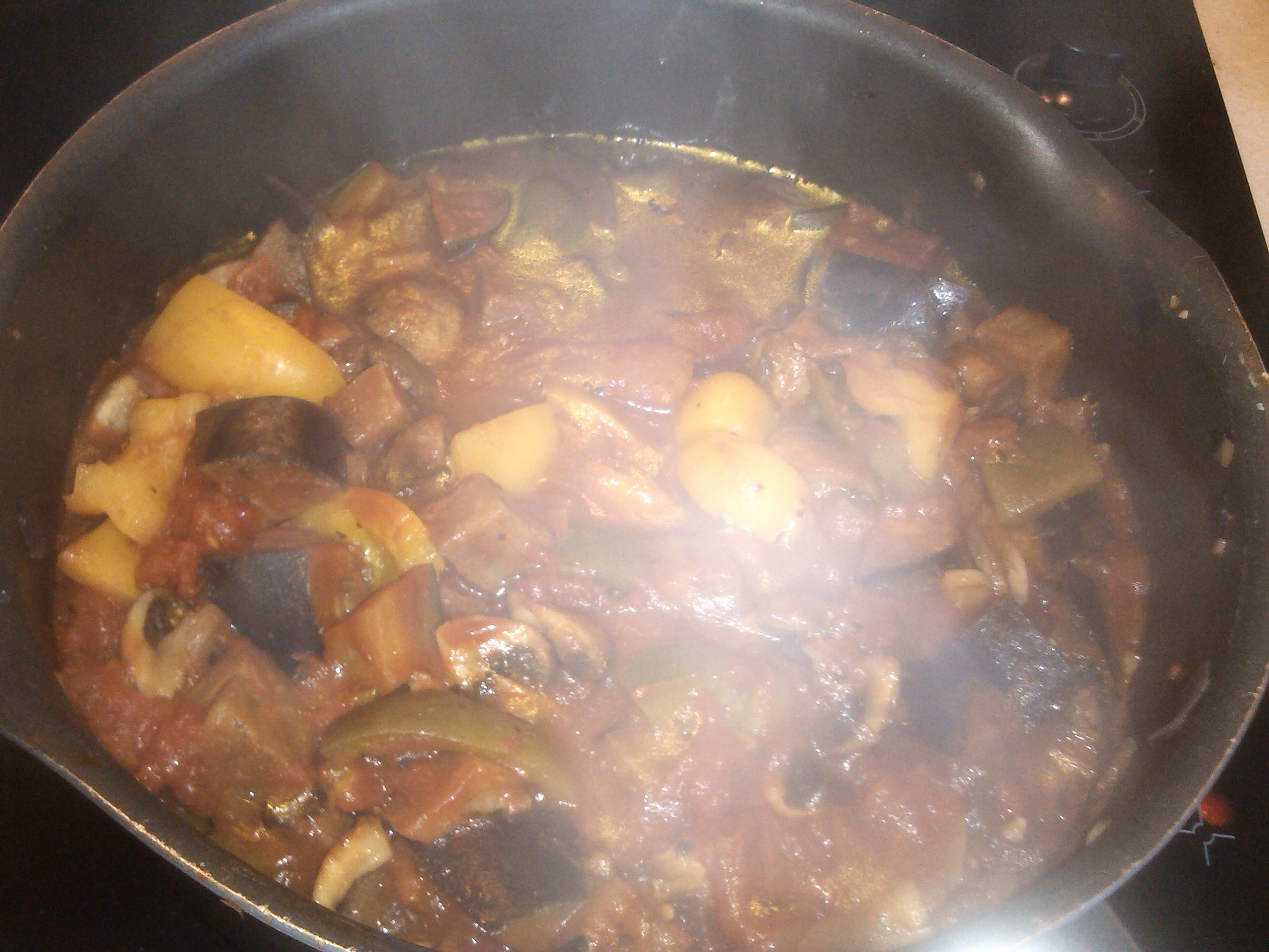 Now, first of all I would like to offer an apology to my father in this post. He makes pretty epic ratatouille and I didn’t actually get chance to ask him how he makes his. Anyway, ratatouille is a pretty amazing way of eating a lot of vegetables in one meal. As with nearly all tomato based sauces the flavour develops over time so the leftovers will almost certainly taste better than it does fresh from the pot (it’s still pretty nice freshly made). In addition, its nice with a lot of things – cheesy things, roast meat, grilled chicken, steak. It’s also a vegan and vegetarian friendly recipe.