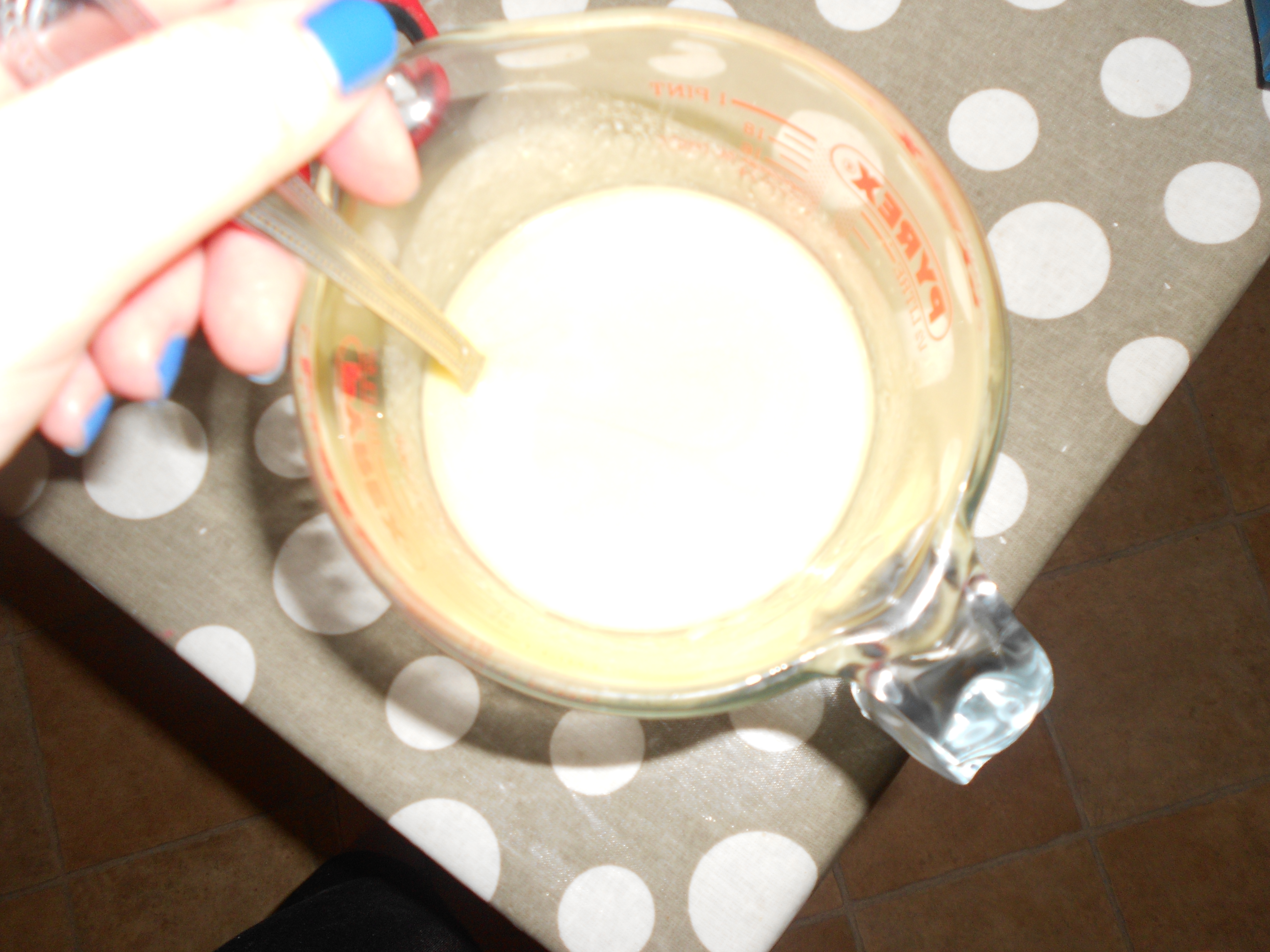 Melt the butter and white chocolate using your preferred method. I used a microwave as its quickest, but only do it in 20-30 second bursts. When the chocolate mix is nearly melted remove from heat and stir, using the residual heat to fully melt everything. Leave to one side for a few minutes.