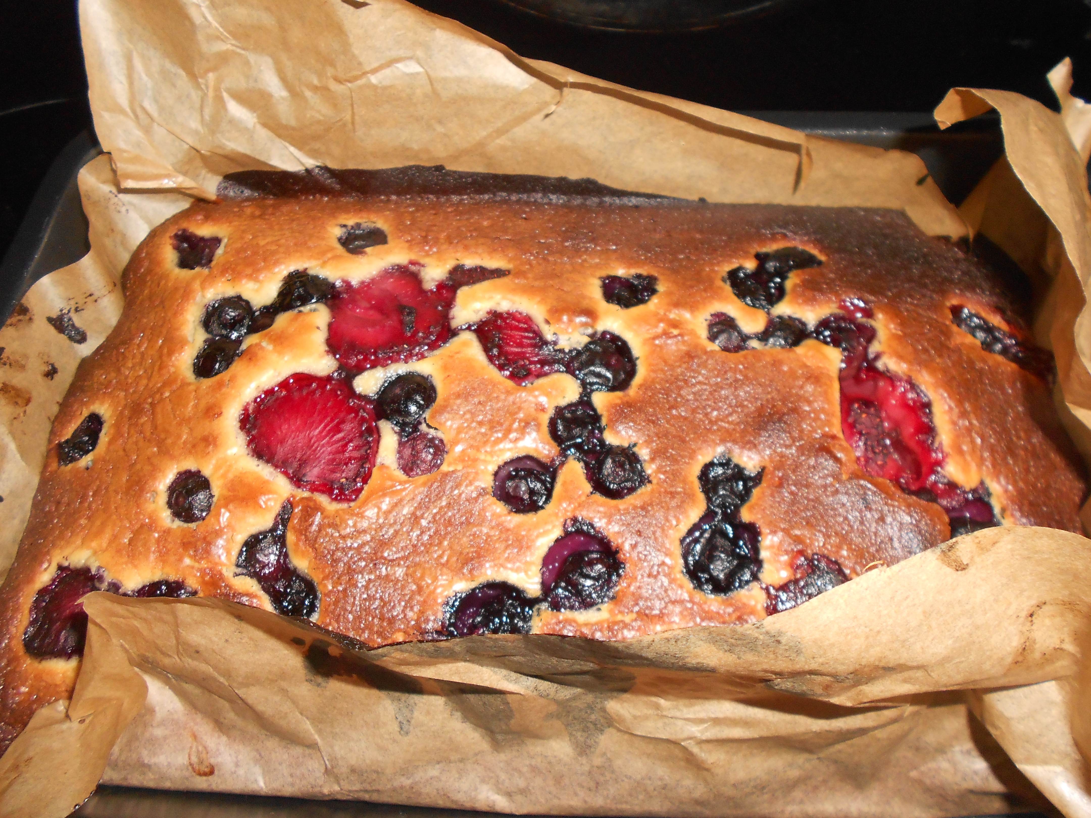 Top the mixture with your fruit and bake for 30 minutes or until the mixture has turned a golden brown colour and crusted on top