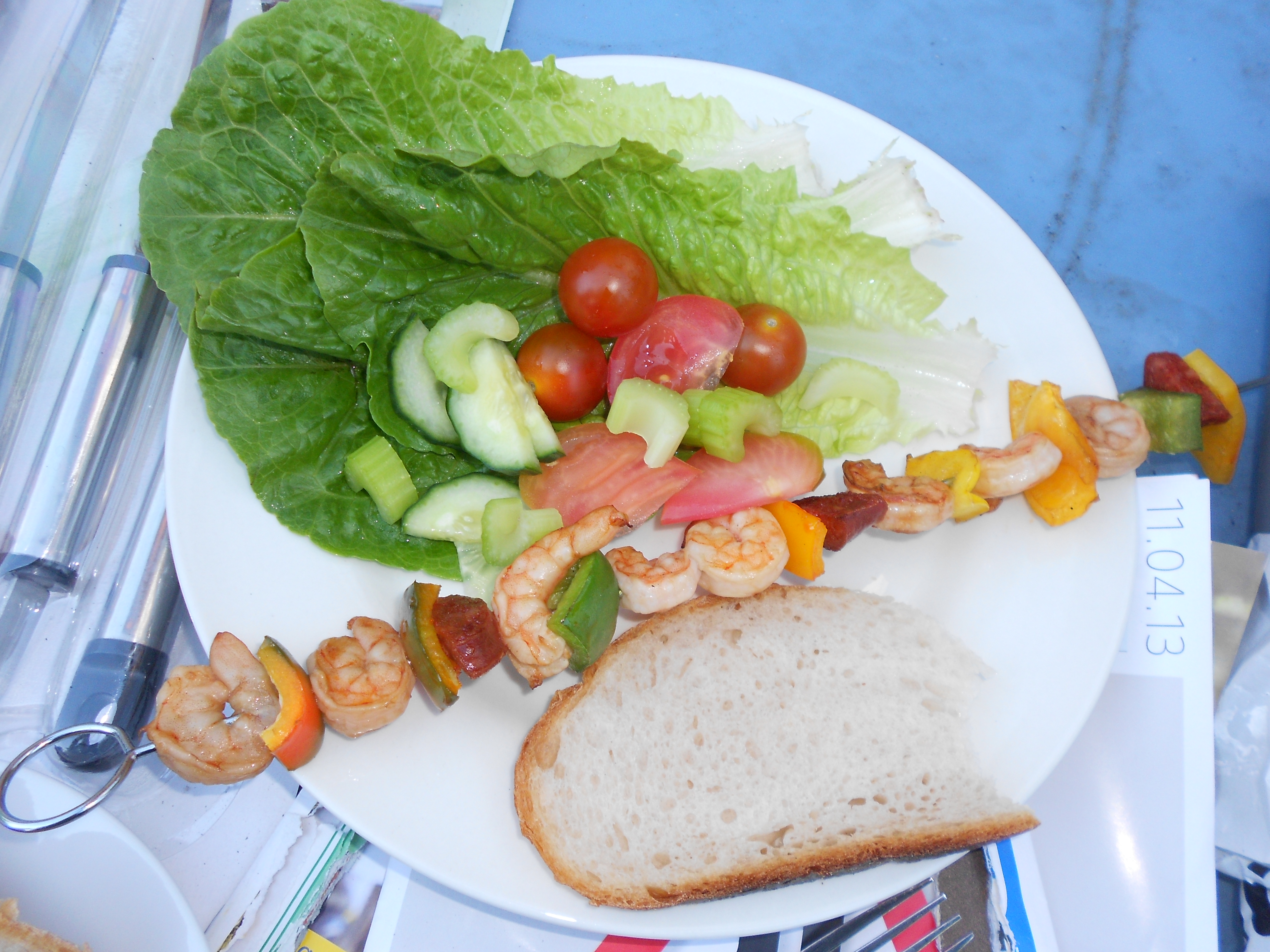 Cook on the barbeque until the peppers skins go slightly black and the prawns become opaque on both sides.