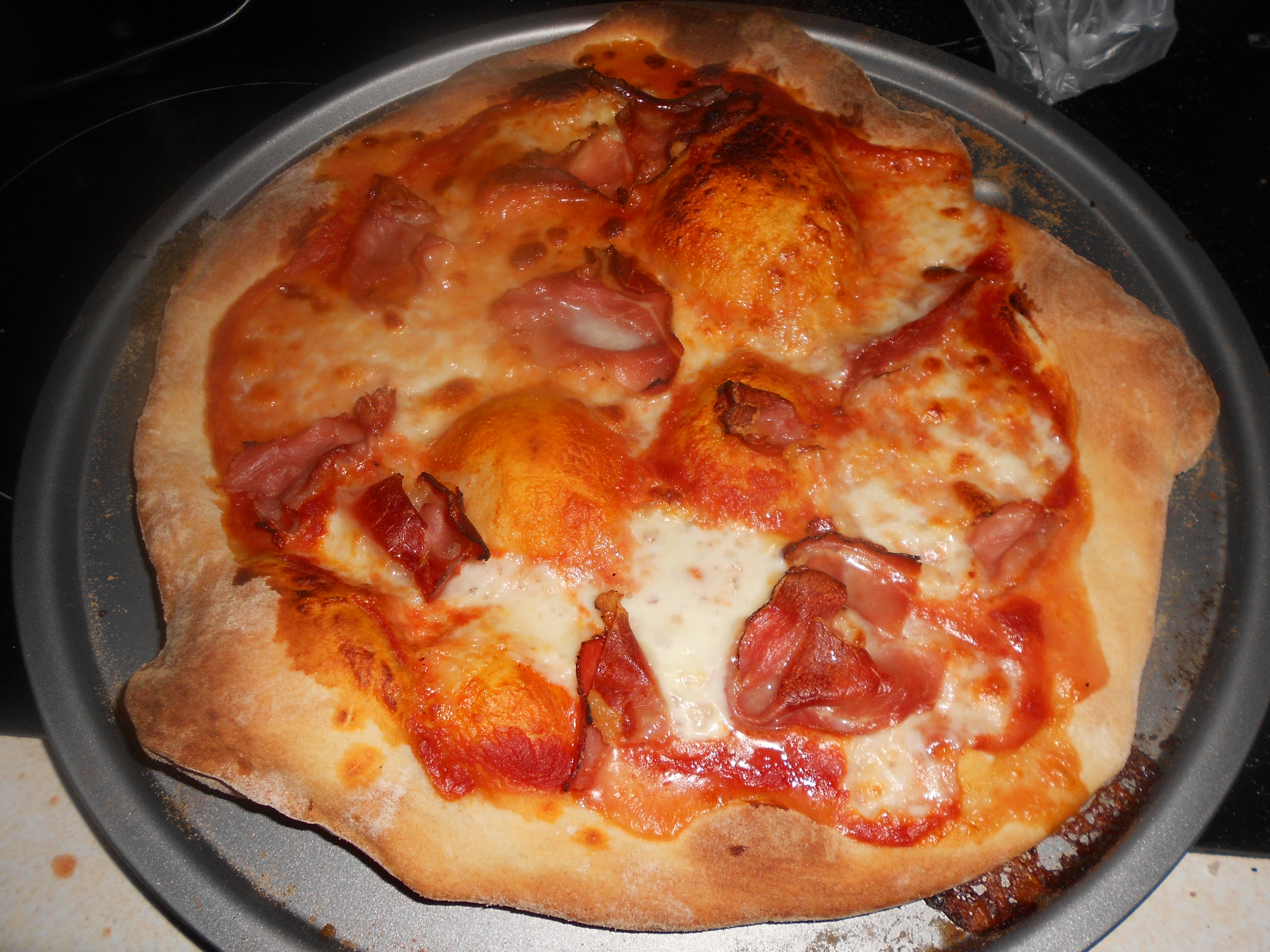 I made these pizzas when I had my friends round at my house one friday night. Knowing what a control freak in the kitchen I can be they were happy to let me just get on with it while we chatted and drank cider.