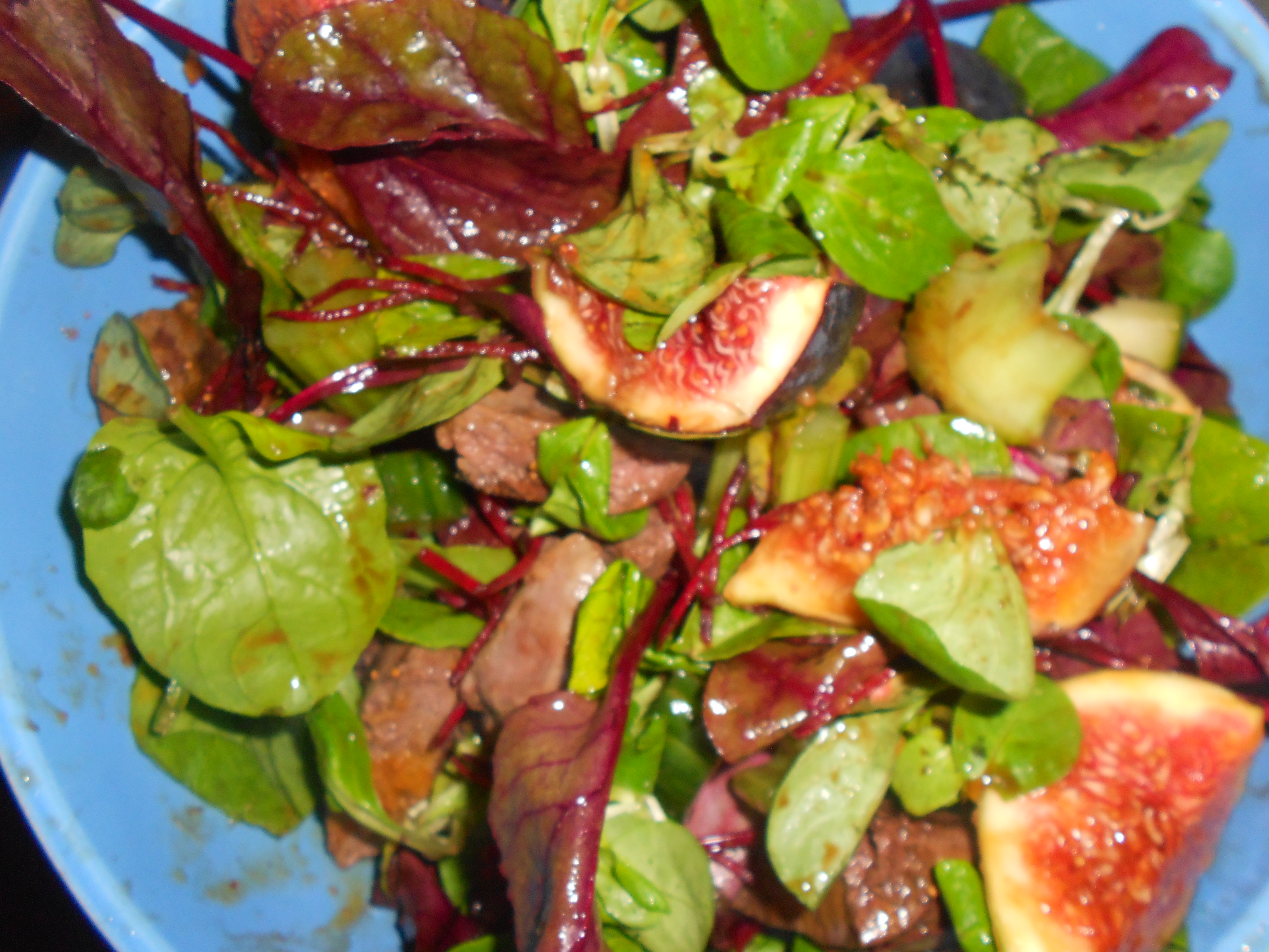 I did, however, enjoy making this salad. The gamey taste of the pigeon goes incredible well with the chilli sauce while the figs add a beautiful colour and sweet flavour. I was intending on making this with pomegranite – but I couldn’t find a whole one and I begrudge paying £2 for a small pack when I could get 6 figs for that! You can I could mix and match the lettuce base. I used one of those bags with different leaves and grated beetroot in (I know I said previously that I dislike the stuff but I could barely taste it). If you can’t get wood pigeon (or don’t fancy it) you could try this with another type of game, or lamb steak. If you can get wood pigeon, try it. It is stupidly quick and easy to cook.