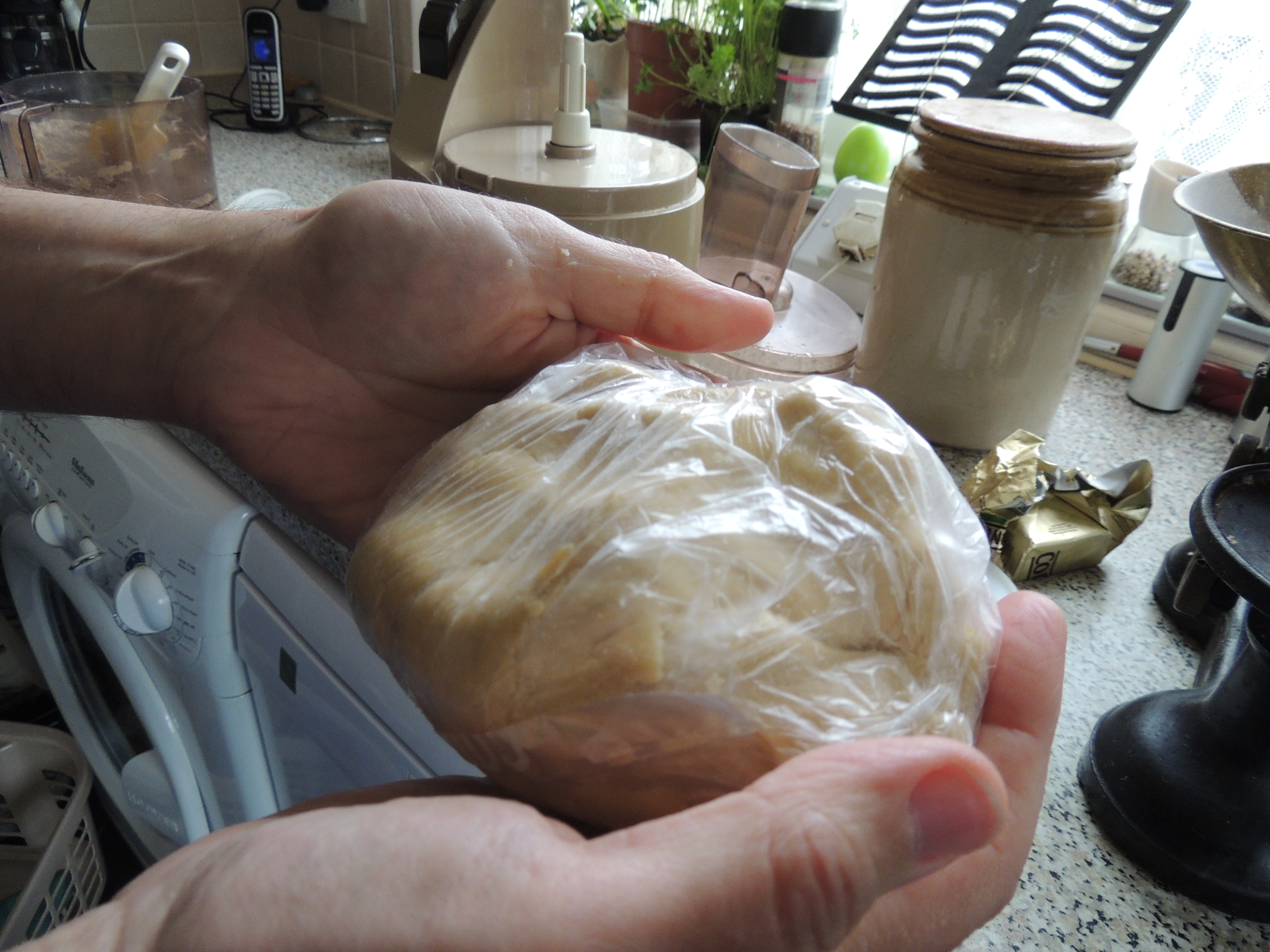 Put the dough into a plastic food bag and press together until the pastry has bound. Then put the dough in the fridge to chill for at least 30 minutes.
