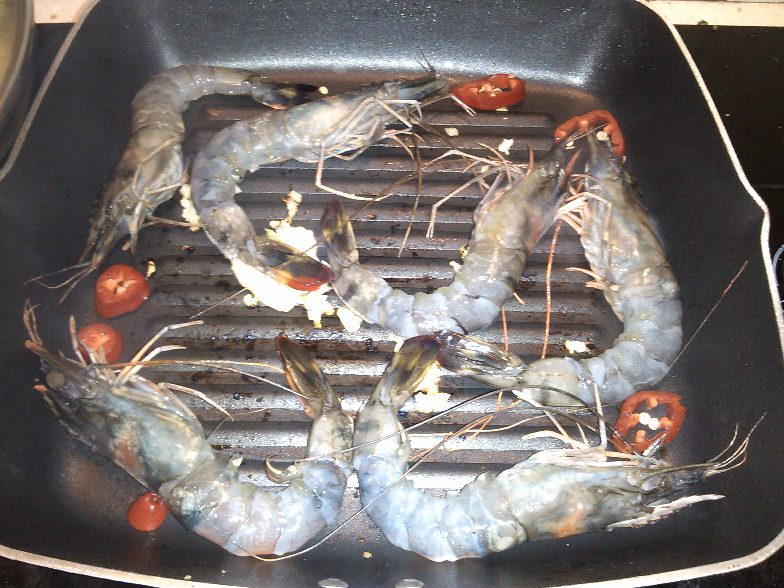 Griddling is a wonderful cooking technique in that is adds a wonderful charred flavour to any food and you don’t need much oil to cook in a griddle pan. This recipe can be done with prawns that have already been shelled if picking away prawn shells doesn’t sound too appealing.