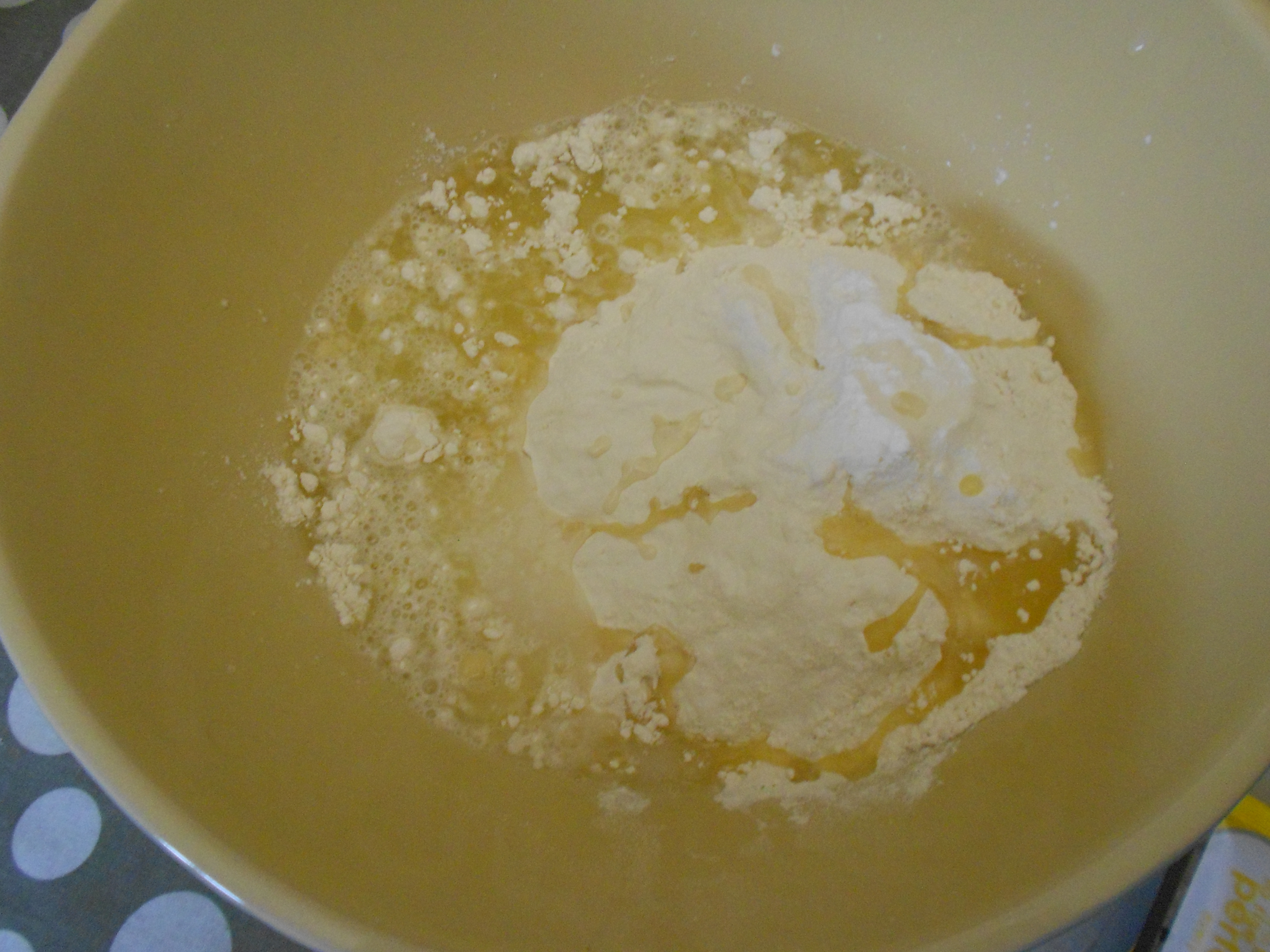 At this point add about 3/4 of your cold water. Use your fingers to make a claw to mix the dough. Keep adding the rest of the water gradually until your dough picks up the flour from the sides of the bowl and is very soft.