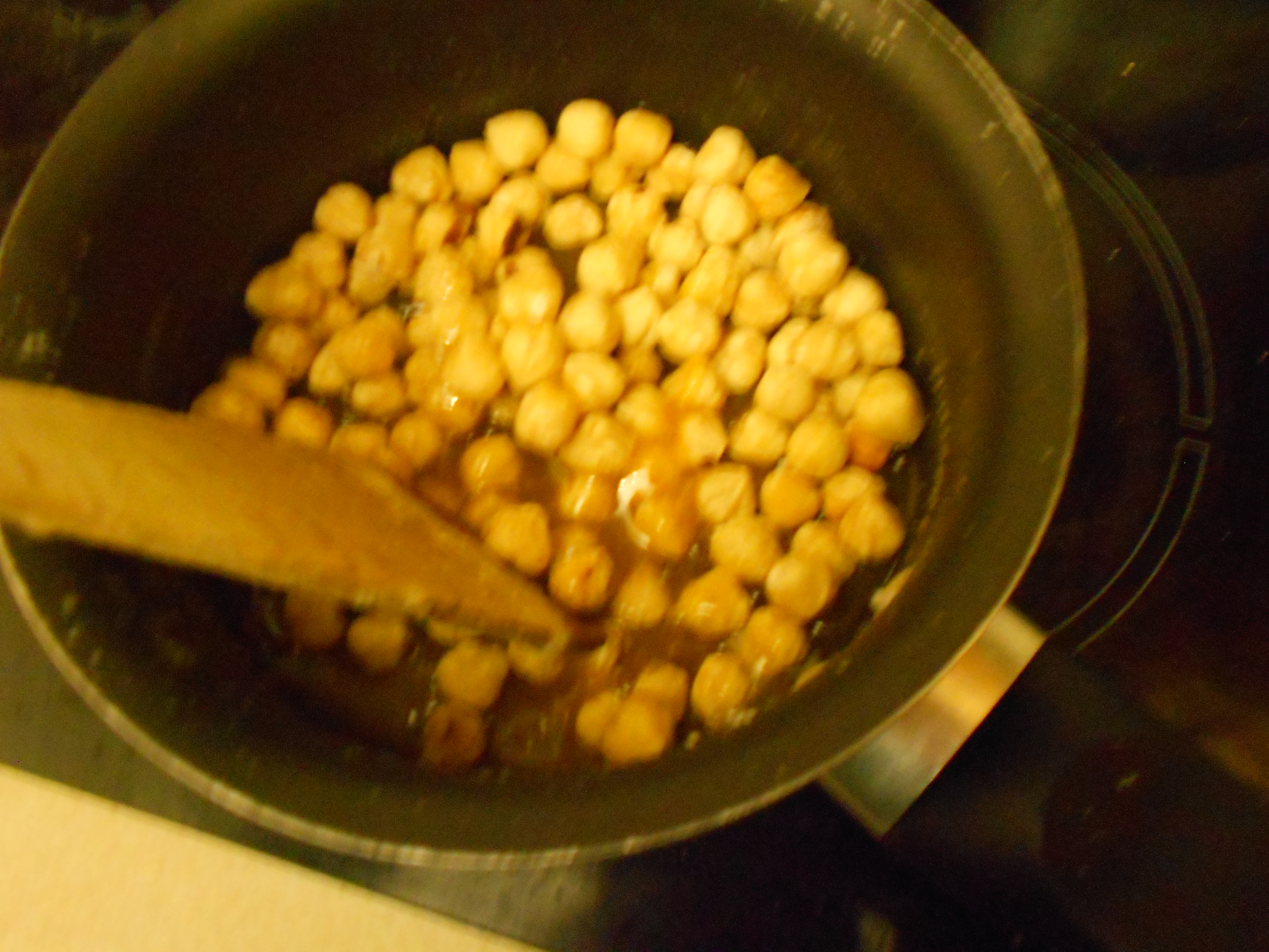 To make the topping warm a small saucepan over a medium heat. Add your sugar and melt together until golden brown. Add the salt and mix well before taking off the heat and adding the hazelnuts. Mix thoroughly. Lay over a piece of greaseproof paper to cool. Once cool separate the nuts by smashing them.