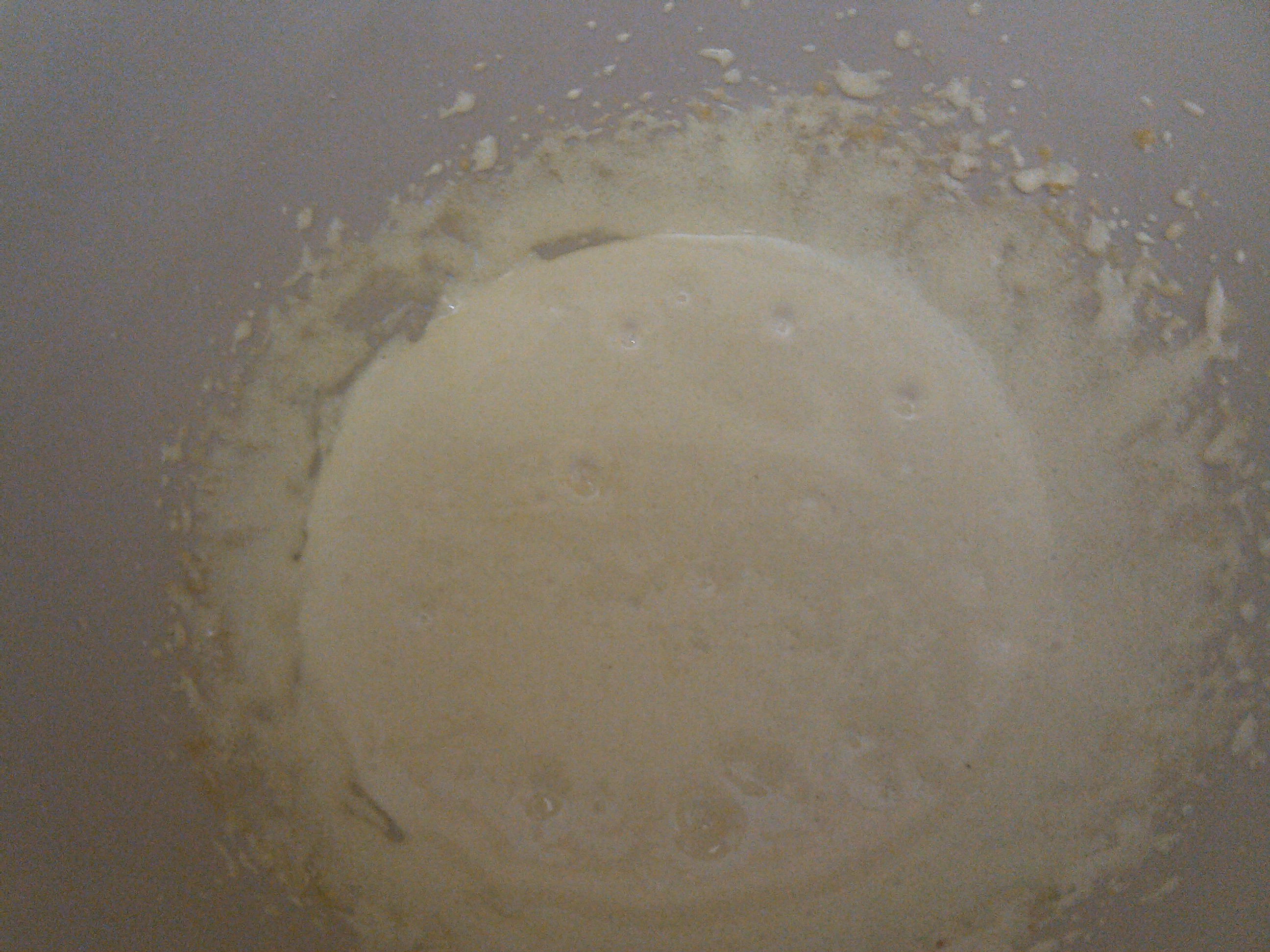 Add the cooled vanilla cream mixture to the egg mixture slowly using a ladle. Once all the mixture was added I gave everything an additional whisk.
