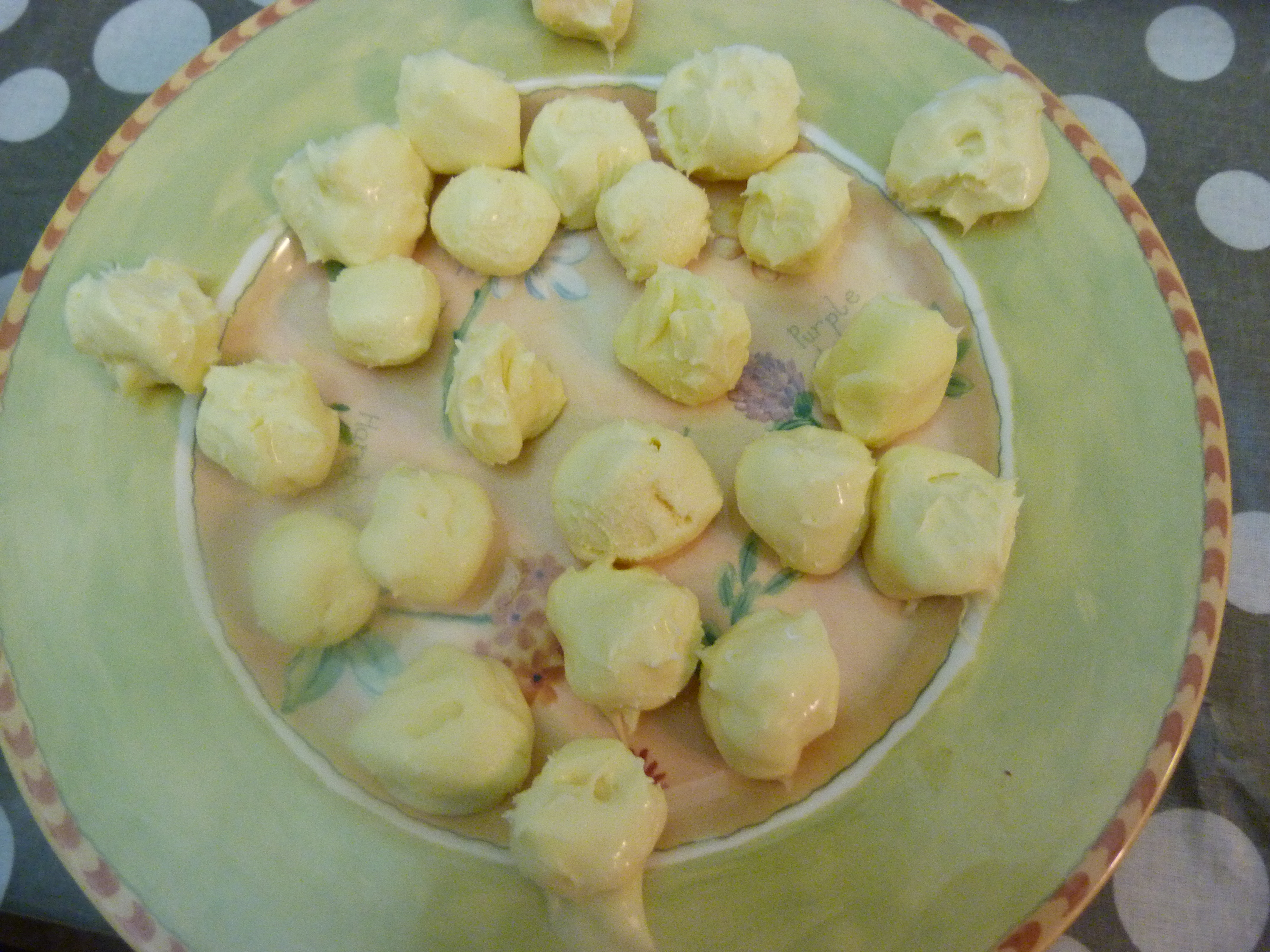 Using a teaspoon and your hands shape your truffles into what you consider an appropriate truffle size and shape (you could make one big one but you might get a stomach ache).