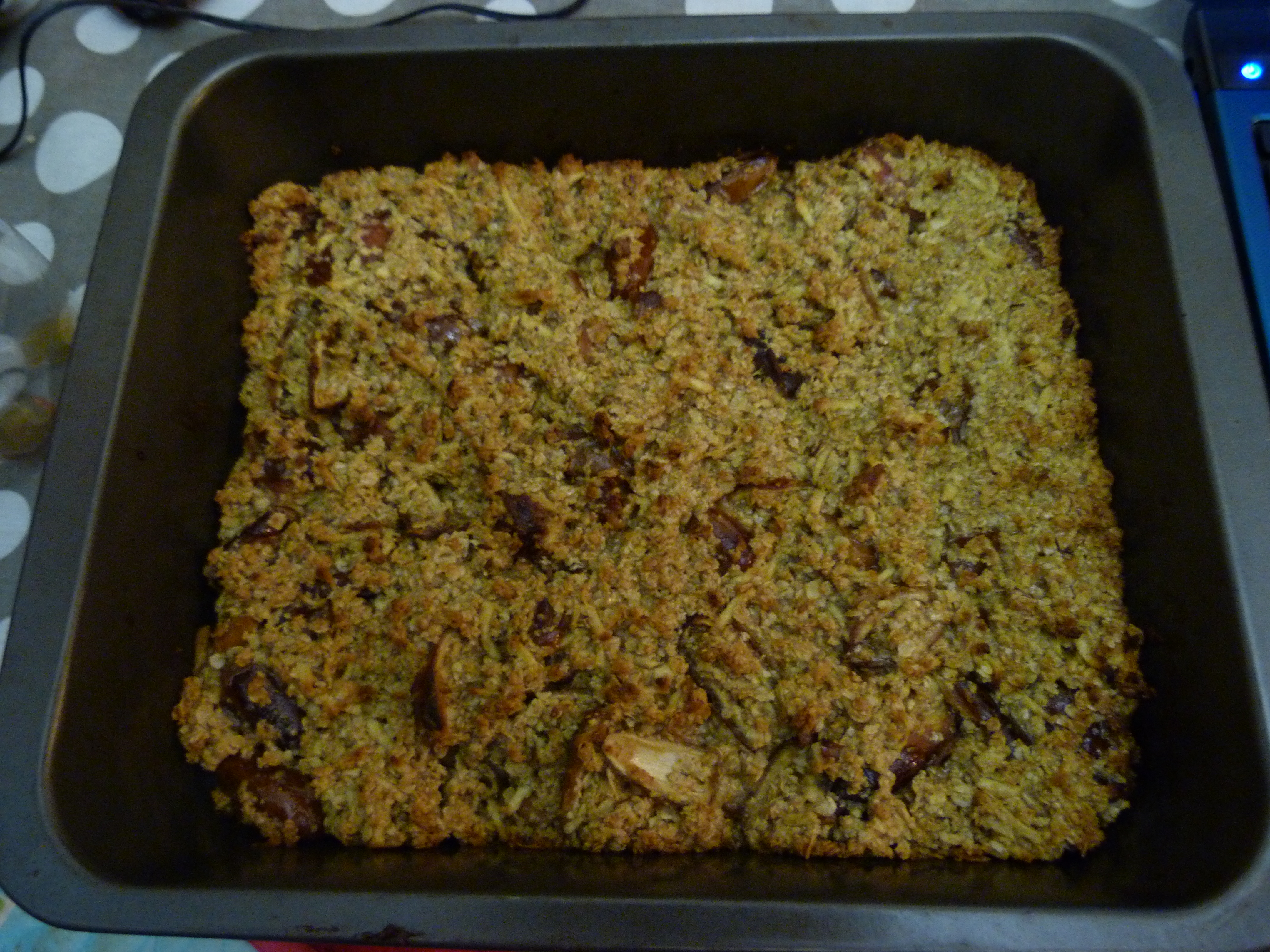 Put this into your greased baking tray in an even layer and make sure the mixture reaches the edges of the tray.Bake until golden brown (about 20 minutes).