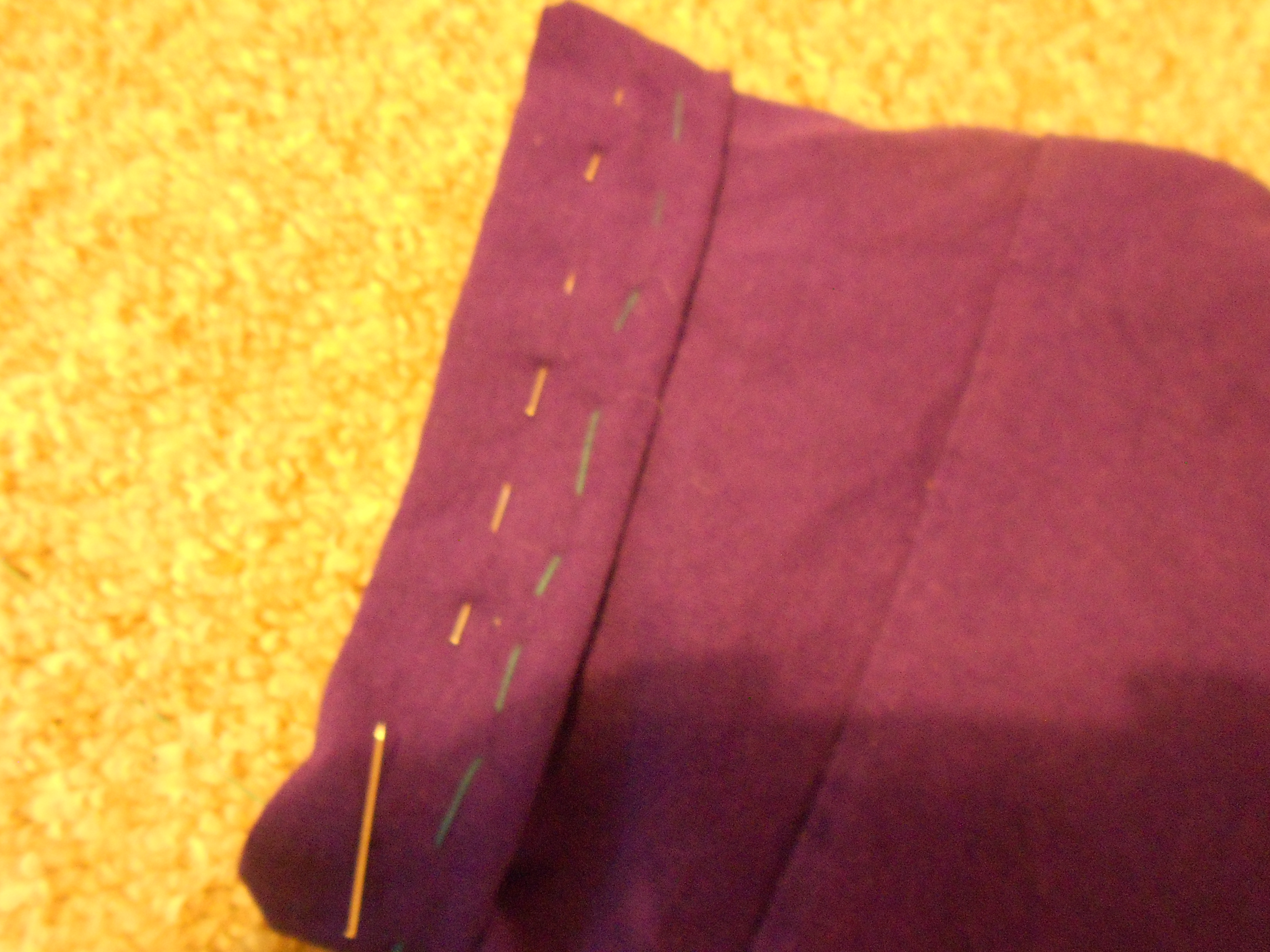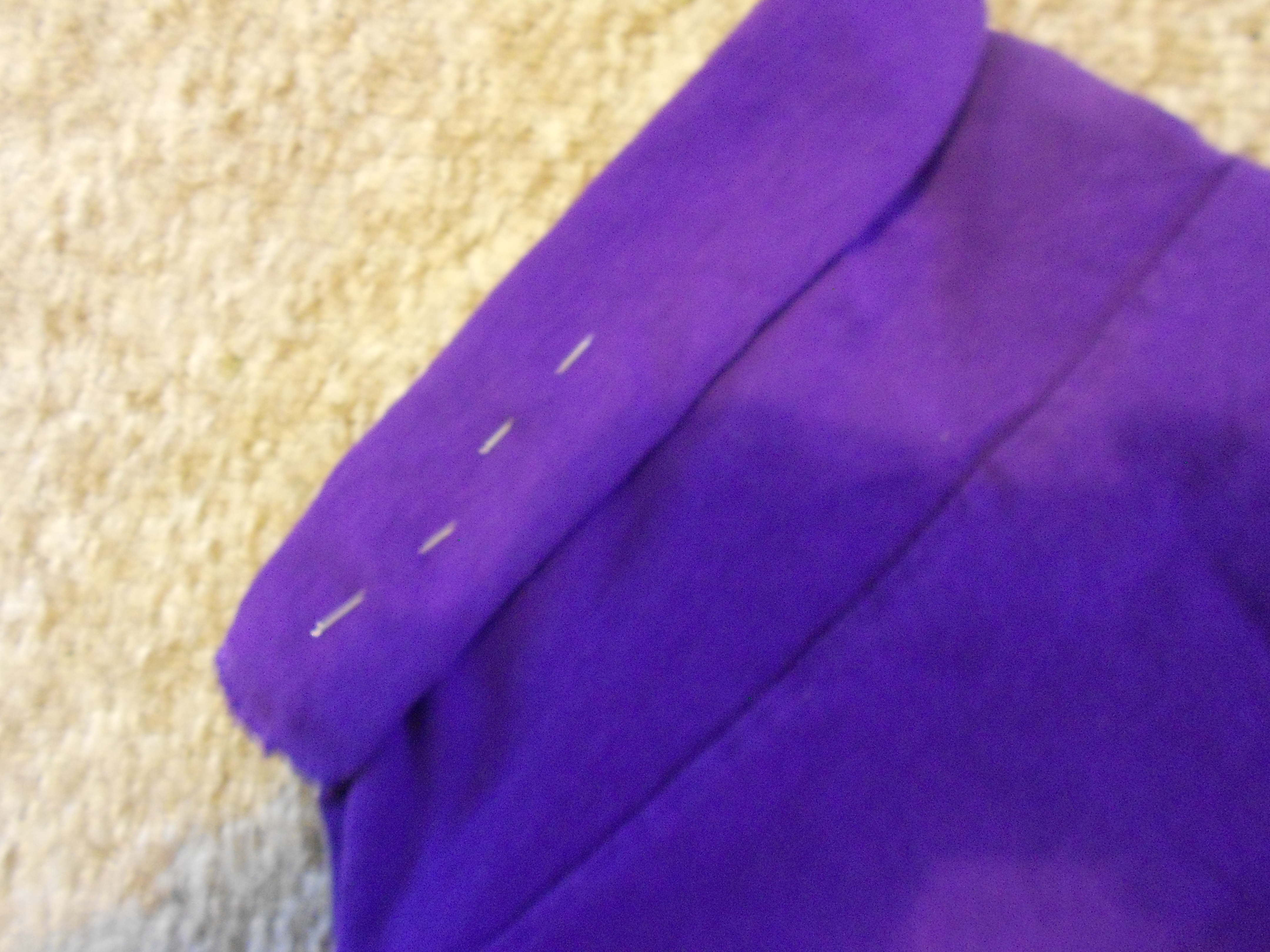 Loosely tack the sleeves with a different coloured thread that you will find easy to see and remove the pins.