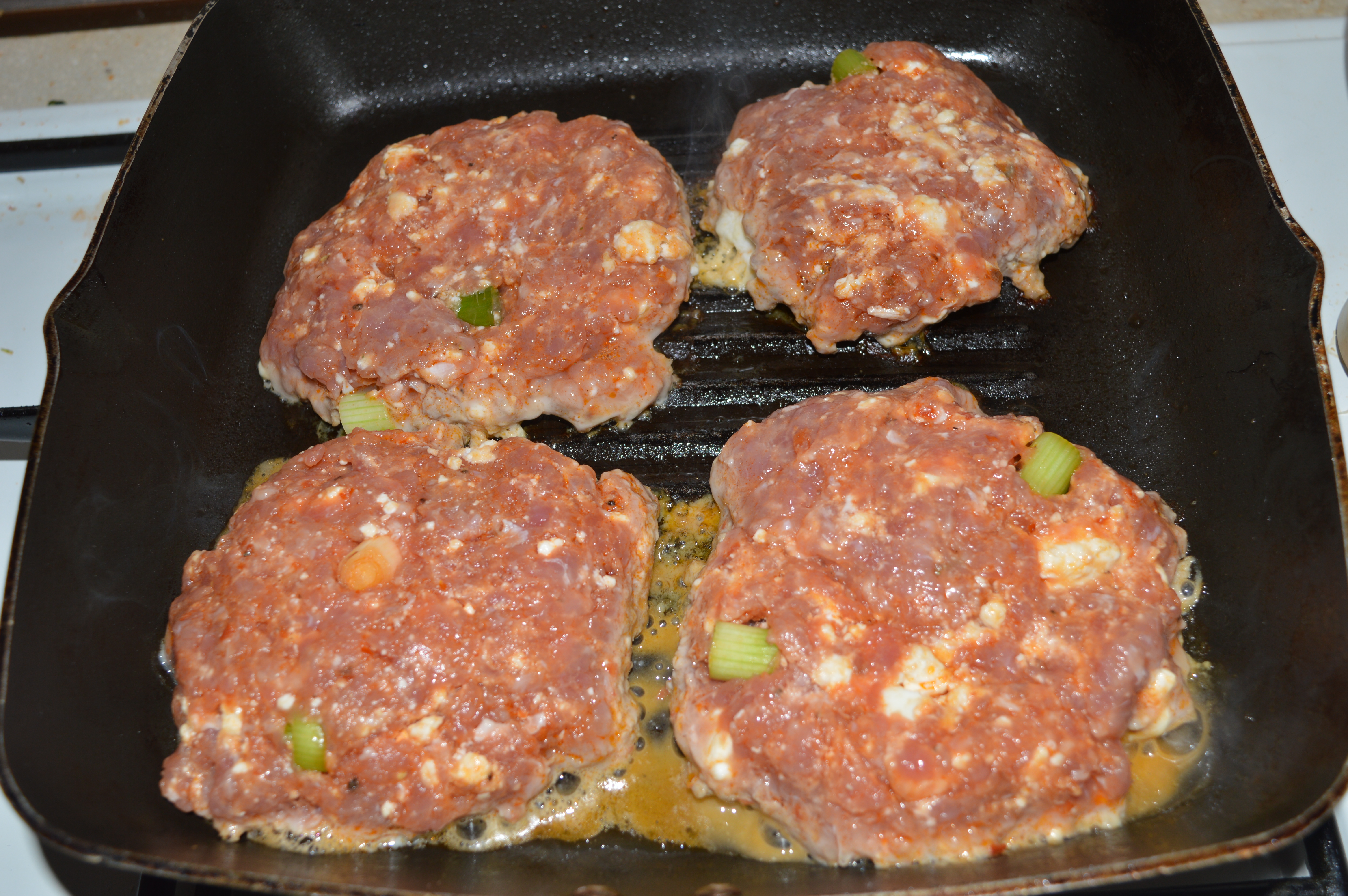 Making these burgers is simple. Place all the ingredients into a large bowl. Use your hands to make sure everything is evenly mixed. Once the mixture has bound together make your burger shapes. At this point, if you have time chill for at least 1 hour. Otherwise get straight on with grilling the meat.