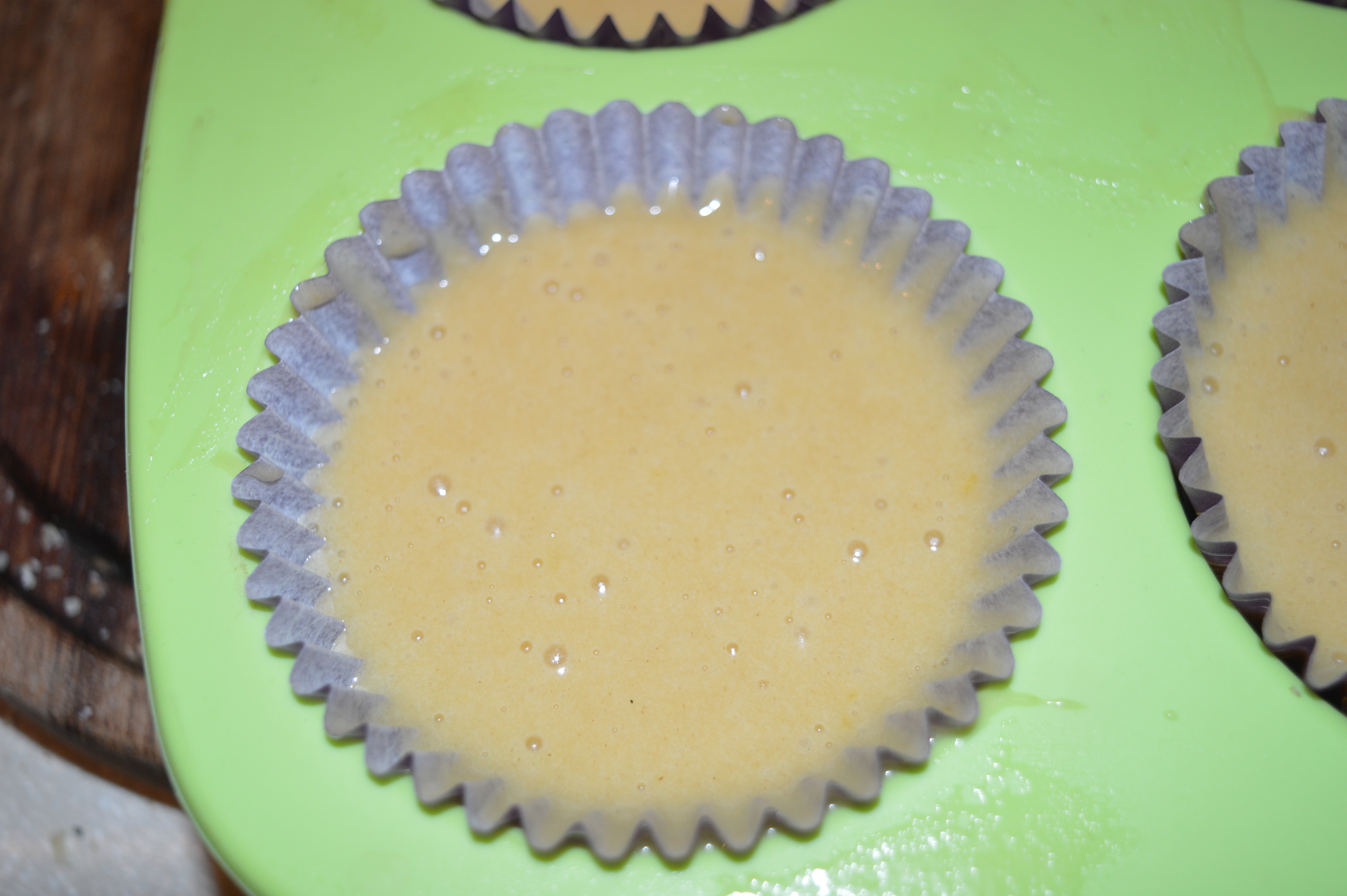 Separate this mix into 12 cake cases in a muffin tin. Once this has been done add half a teaspoon of lemon curd to each cake (this sinks while baking to create a lovely lemon filling).