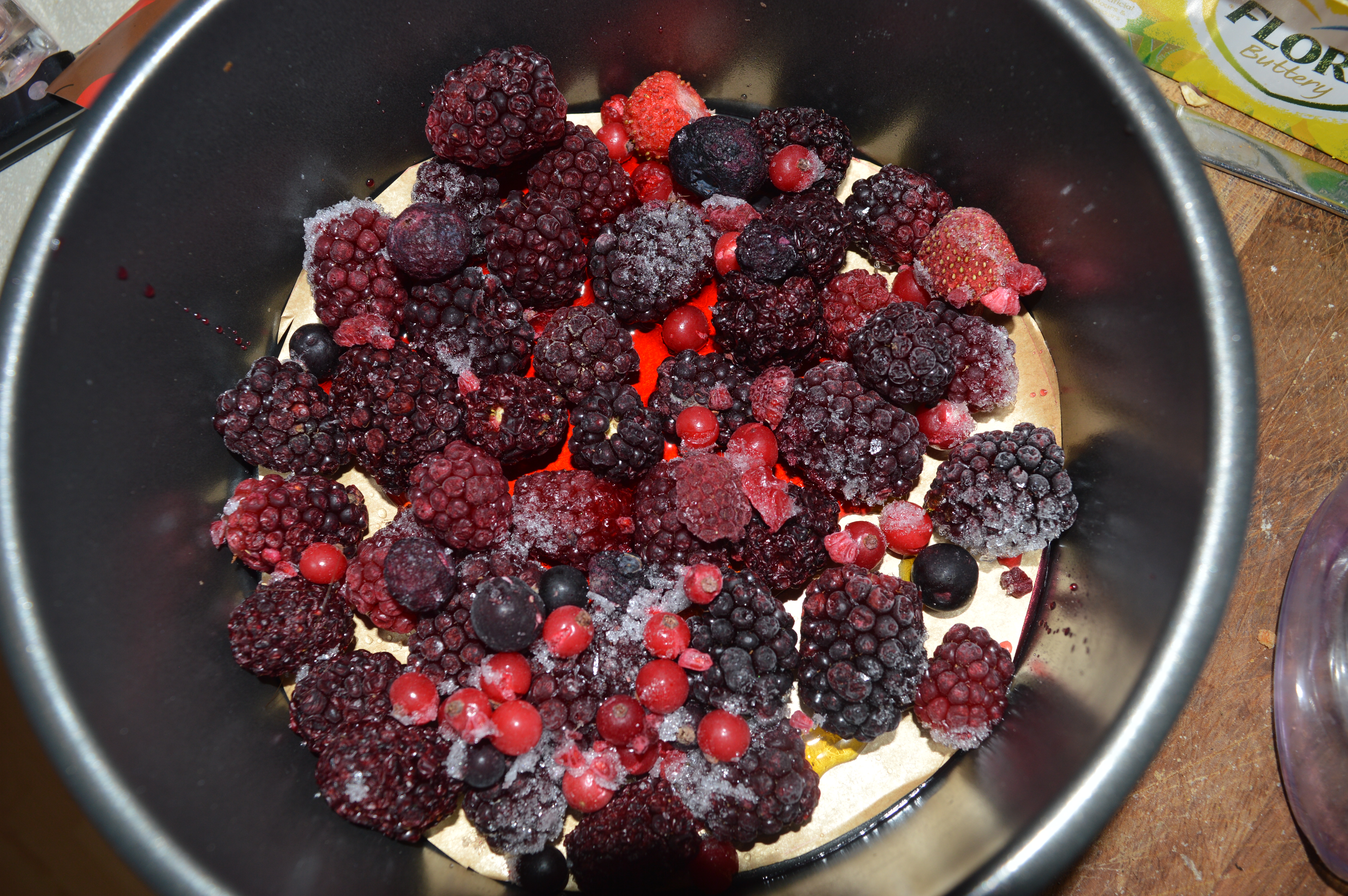 Preheat your oven to 180°C. Line an 8inch loose bottomed cake tin with greaseproof paper. Drizzle this with 1 tbsp of your golden syrup and top with your berries.