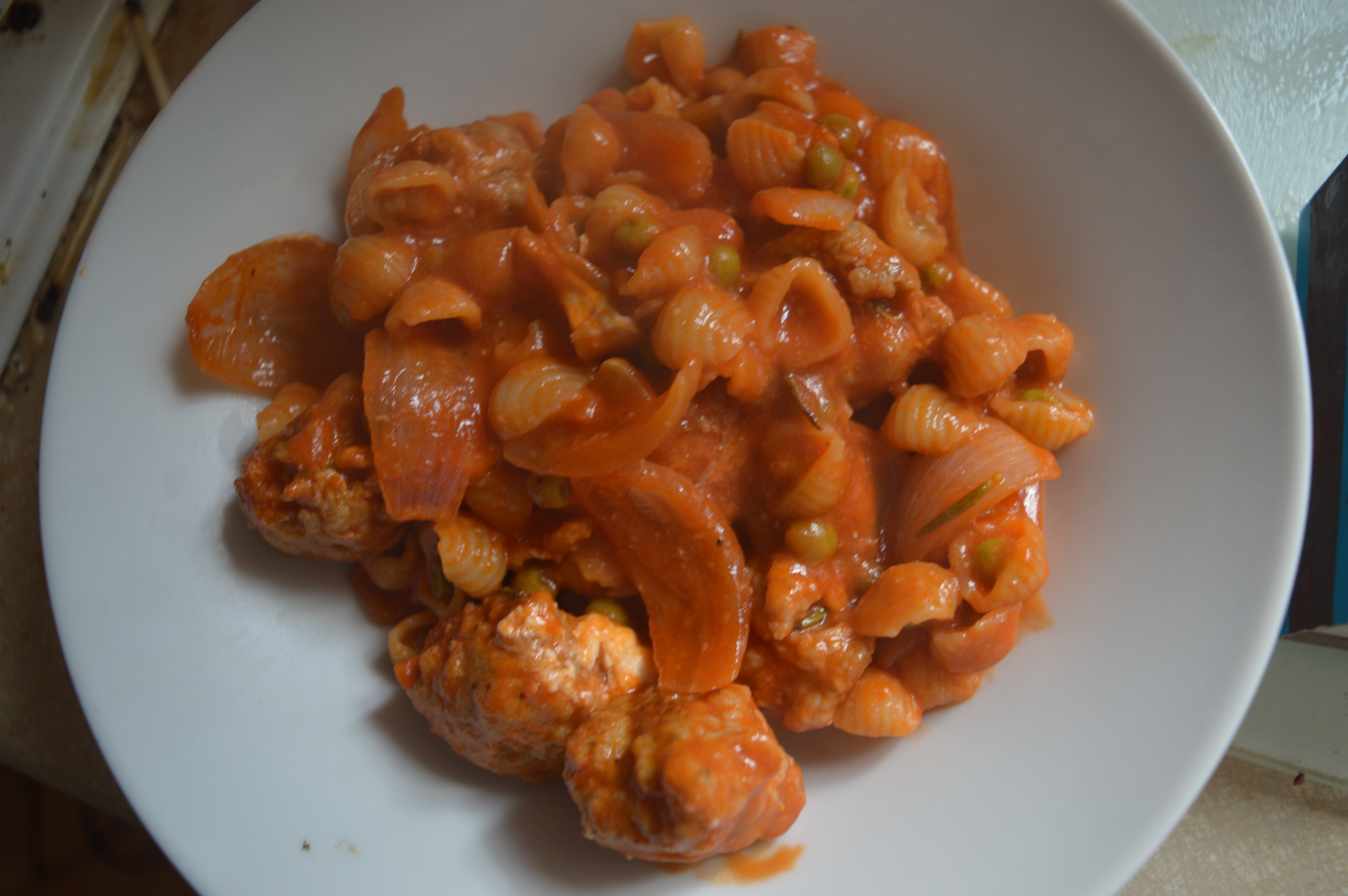 In addition, as well as praising pasta in this post I should mention; sausage meatballs have been something of a revelation in this house. Sausages (especially good quality sausages) need no extra seasoning meaning that you can skin the sausages and reshape them in one easy step. In addition it provides a bit of variety when compared with more traditional meatball recipes. It’s probably also a good recipe for my mother (if she’s reading this) who is allergic to pork in its original state but can manage sausages and bacon and from time to time might prefer a new sausage recipe.
